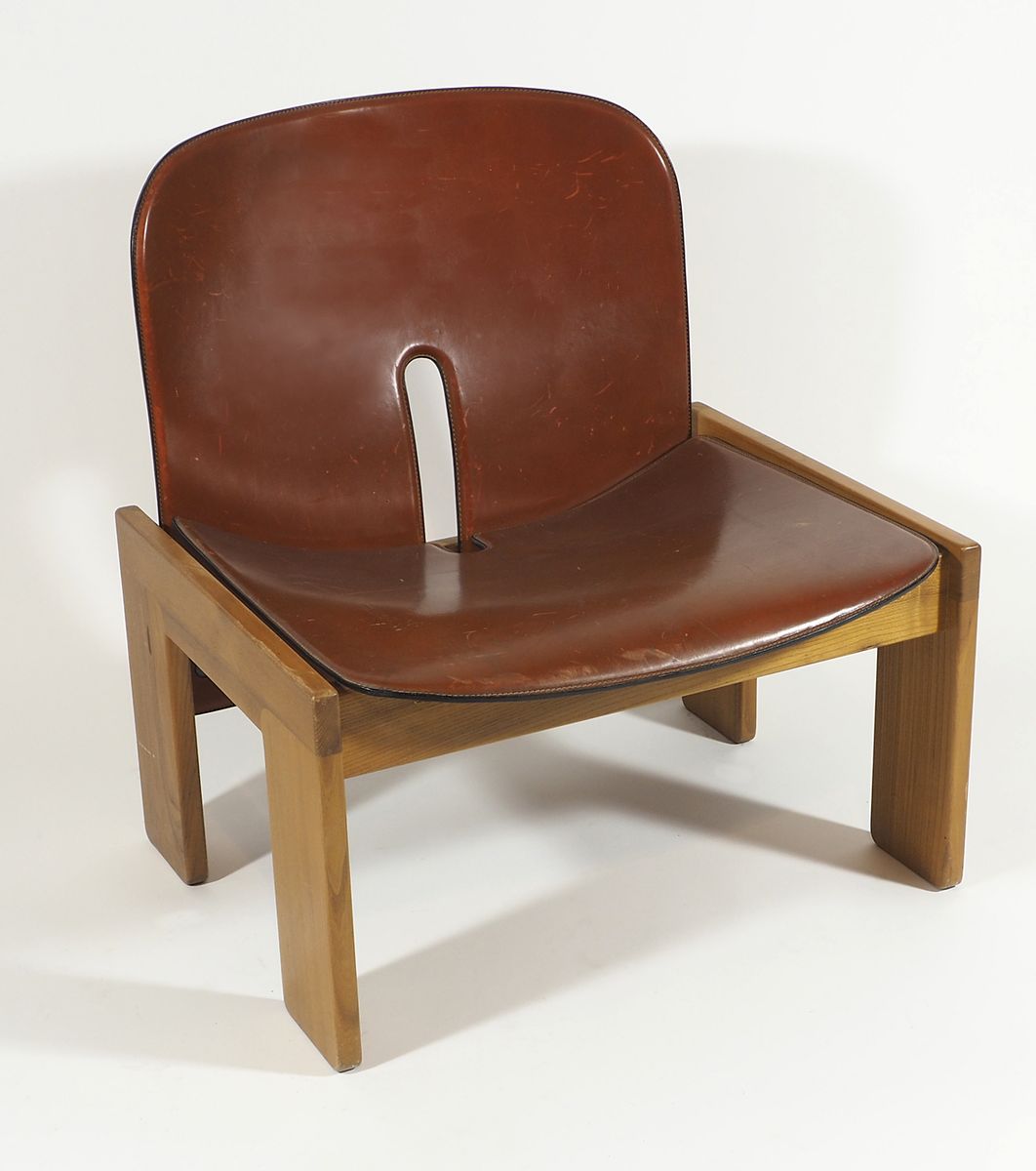 Figli di Amedeo Cassina: sedia in legno e cuoio rosso. Con etichetta originale.