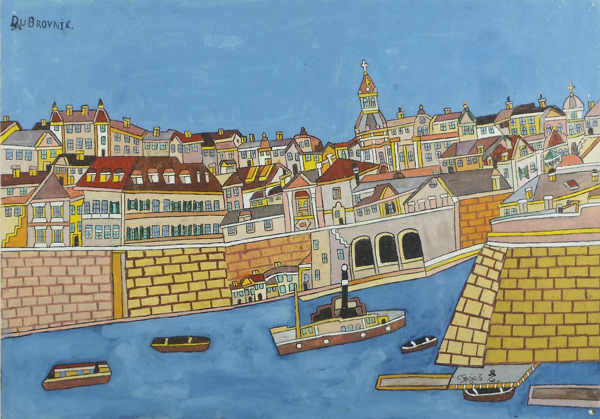 Emerik Fejes Croazia 1904 "Veduta di Dubrovnik" cm. 42x59 - tecnica mista su...