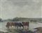 Luis Tessandori 1897-1974 "Mucche nella pozza" cm. 60x75 - olio su tela Firmato b. a s. Al retro firma e titolo.