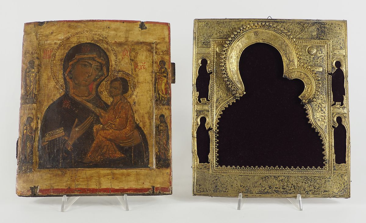 Icona dipinta su tavola raffigurante Madonna di Tichwin con bambino, Russia,...