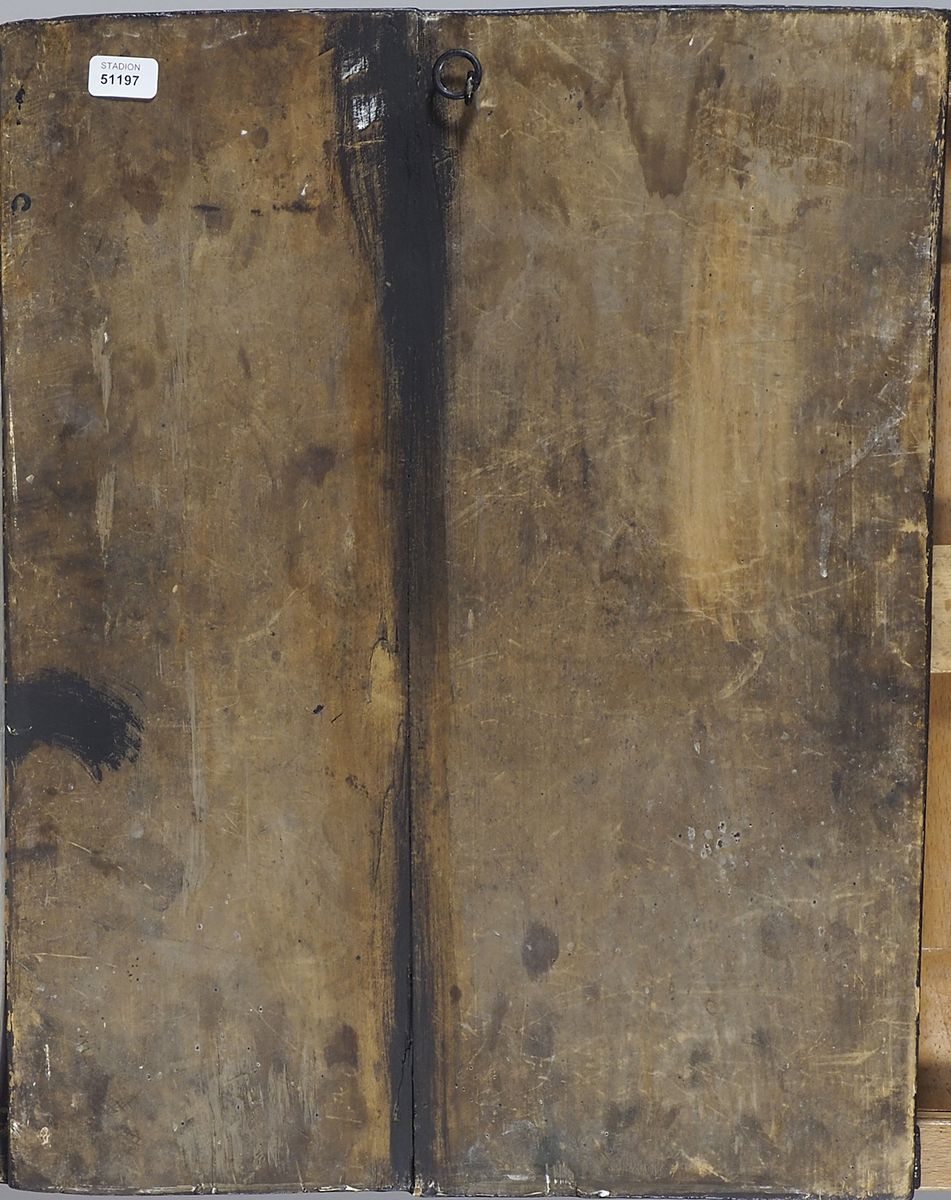 Icona dipinta su tavola raffigurante Deesis e fonte miracolosa. Russia centrale, inizio XX secolo. cm. 47x37.