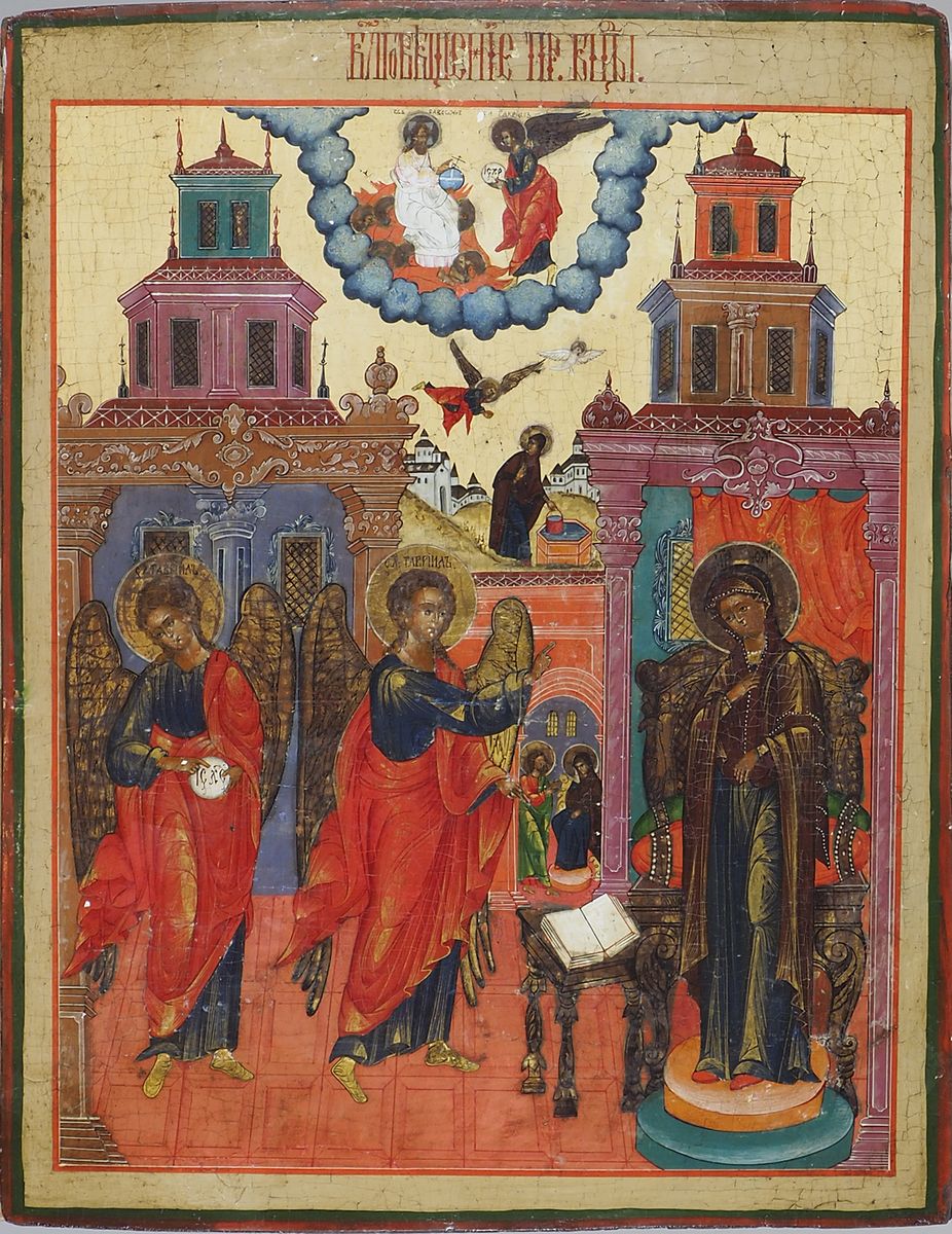 Icona dipinta su tavola raffigurante Annunciazione. Russia centrale, inizio...