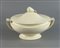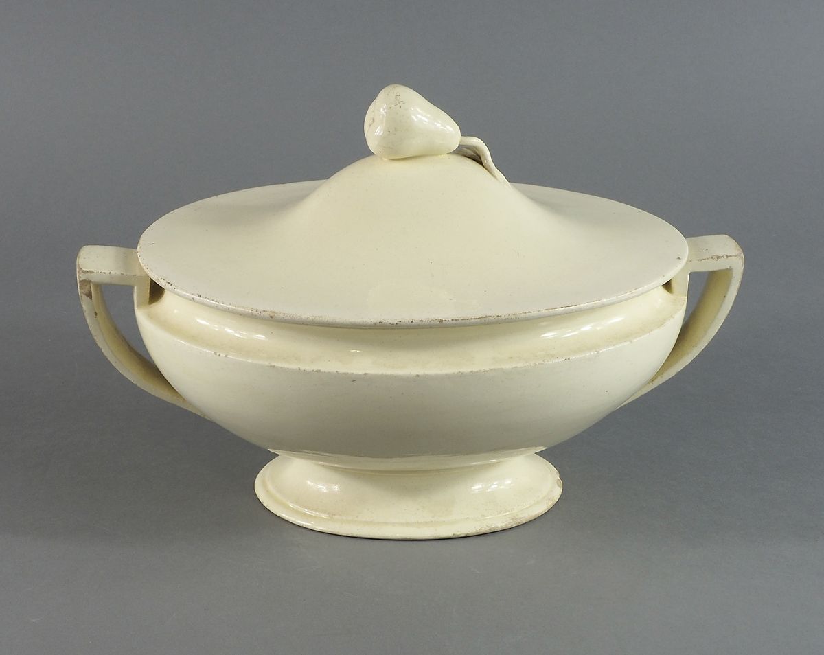 Lotto 205 | Antica zuppiera smaltata bianca con due manici e frutto sul coperchio. cm....