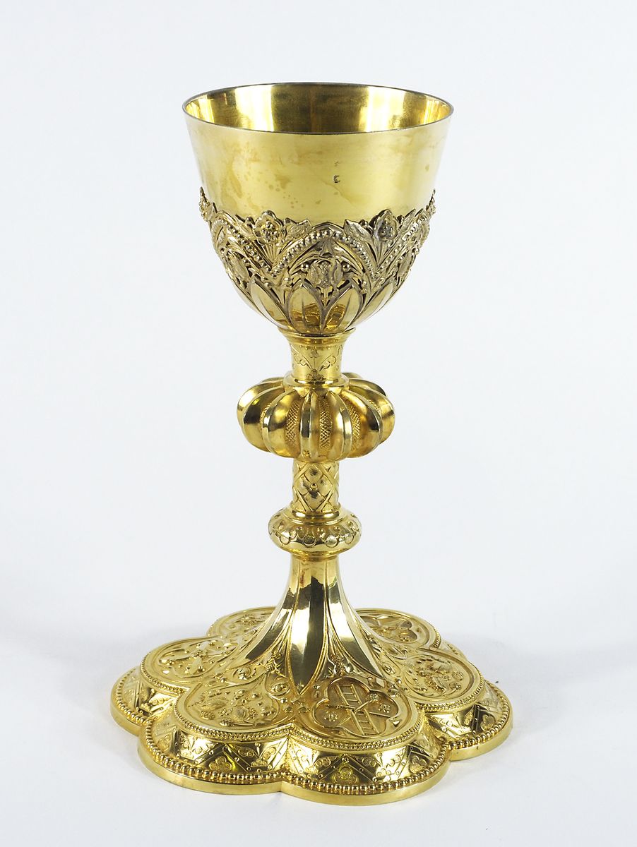 Calice in argento dorato 925 finemente lavorato a sbalzo. Francia dal 1838 al...