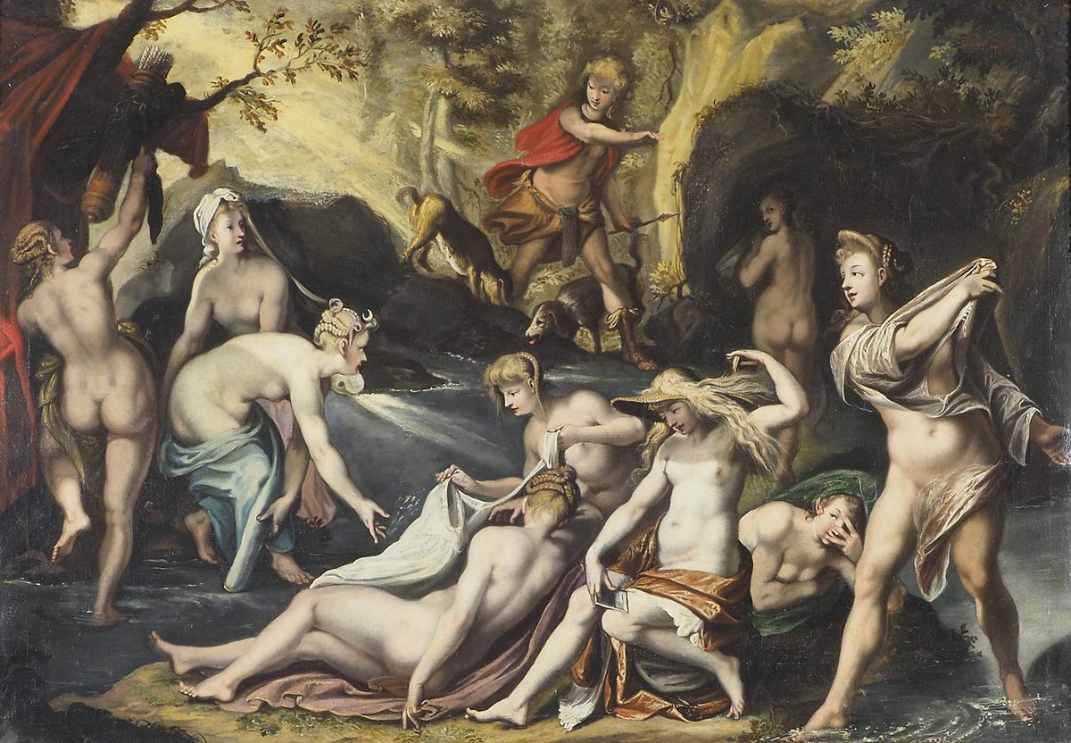 Maestro inizio XVII secolo "Diana e Atteone" cm. 84x120 - olio su tela foderata