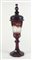 Coppa in cristallo incamiciato rosso con fascia centrale raffigurante figure nel paesaggio, con coperchio. H. tot cm. 52.