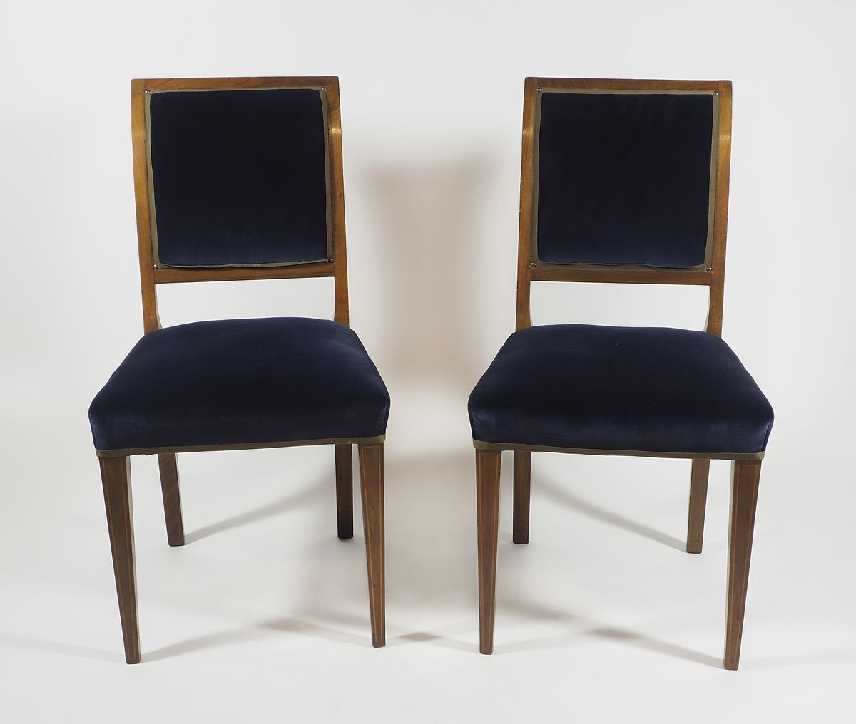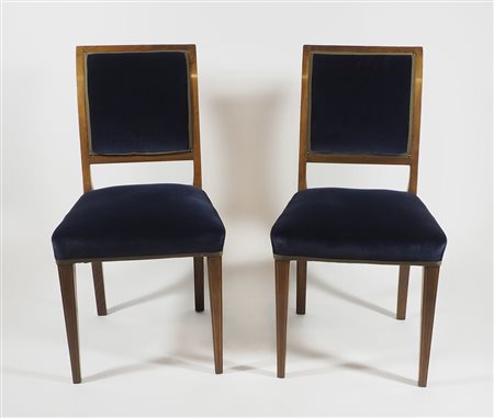 Lotto di 8 sedie in legno rivestitte da velluto blu. Inizio XX secolo.