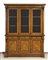 Credenza in legno a doppio corpo decorata con intarsi in legni chiari e busti femminili in bronzo, parte superiore a 3 ante a vetri, parte inferiore a 3 ante e 3 cassetti. cm. 232x181x50.