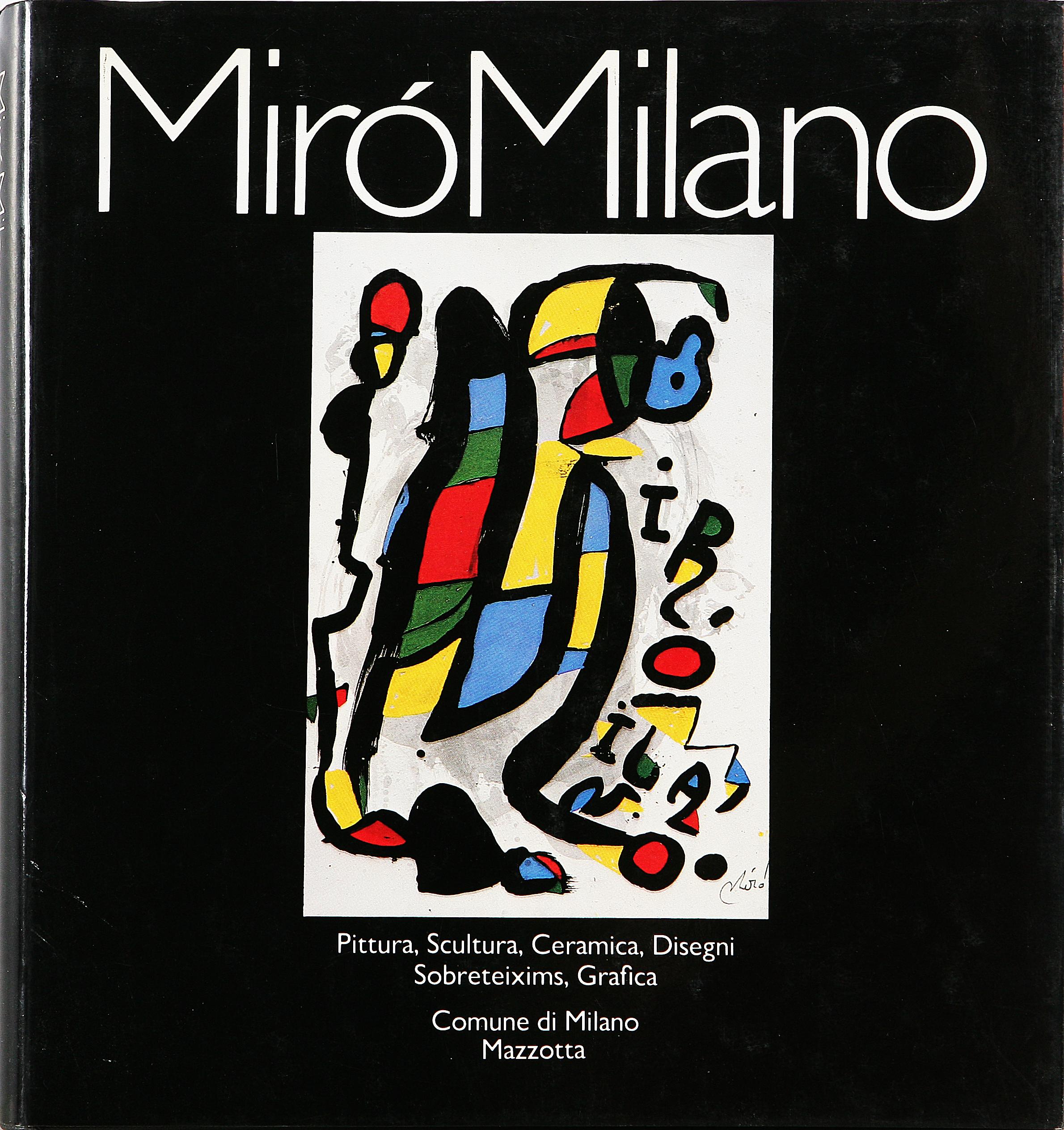 ANONIMO Mirò Milano:pittura, scultura, ceramica, disegni, sobreteiximis, grafica. Libro d'arte. Cm 23x25x2,5. Ed. Gabriele Mazzotta, Milano, 1981; libro realizzato dal Comune di Milano in occasione della mostra tenutasi tra il 27 ottobre e il 6 dicembre 1981 presso il Castello Sforzesco, la Rotonda di via Besana, il Palazzo del Senato, il Palazzo Dugnani, la Galleria del Naviglio, la Galleria del Milione, lo Studio Marconi.