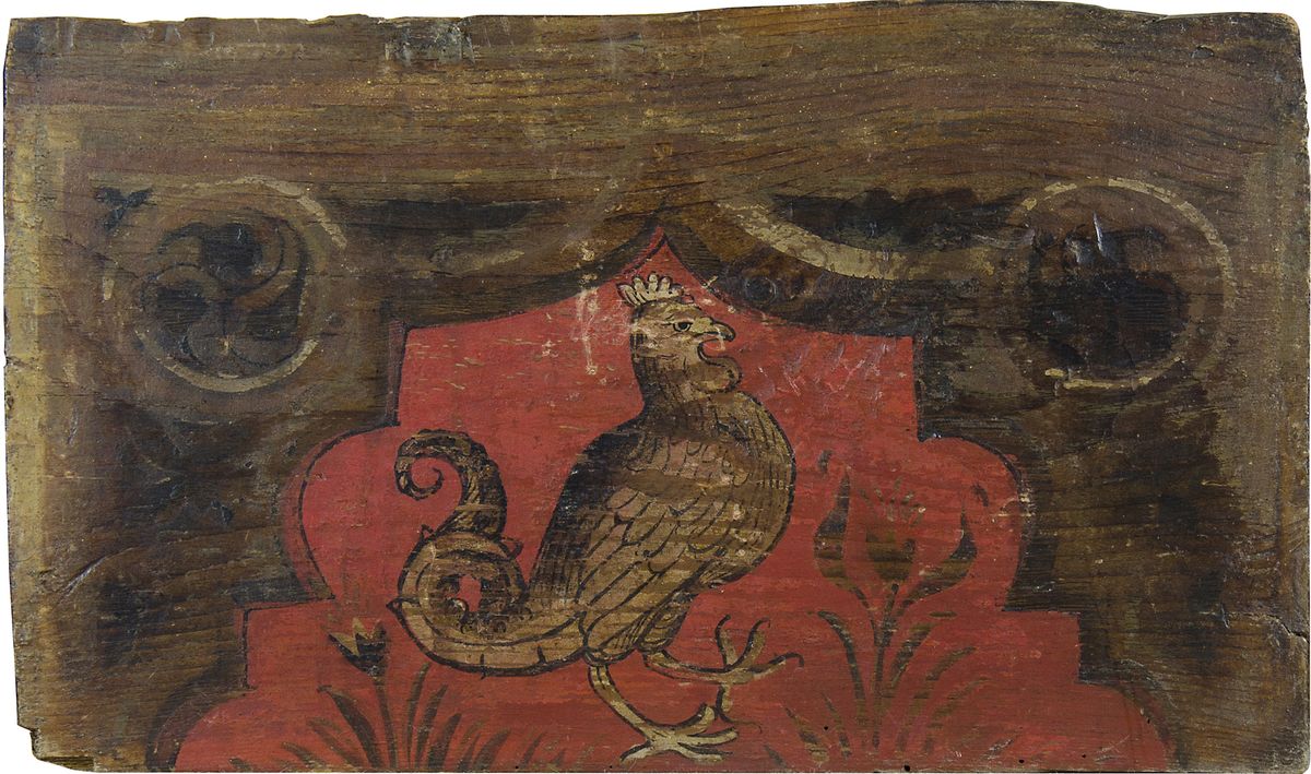 Maestro lombardo del XVI secolo Lotto di 3 predelle da soffitto dipinte, cm....