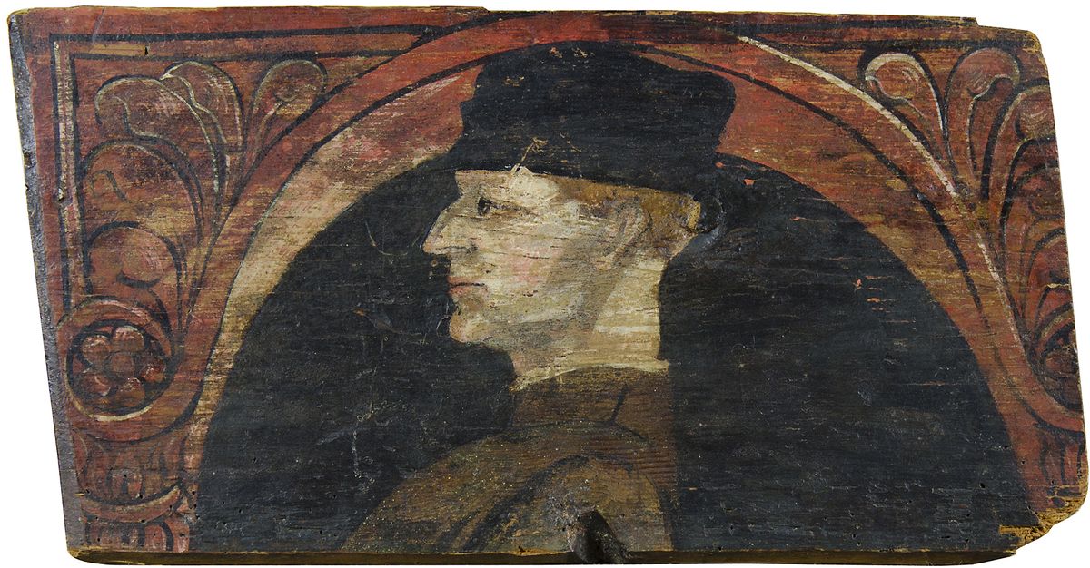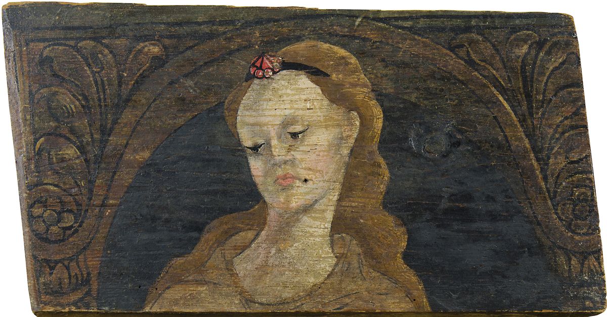Maestro lombardo del XVI secolo Lotto di 3 predelle da soffitto dipinte, cm. 24x44 ciascuna.