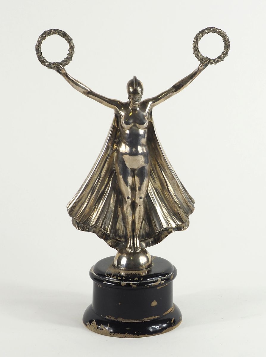 Scultura in argento raffigurante La Gloria, base in legno. Austria, dal 1866 al 1922. Titolo 900. Argento gr. 900. H. tot cm. 32