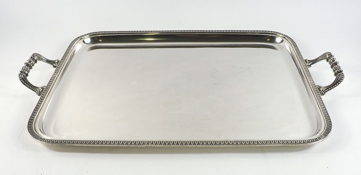 Grande vassoio rettangolare in argento con manici laterali. cm. 44x67 gr. 2900.
