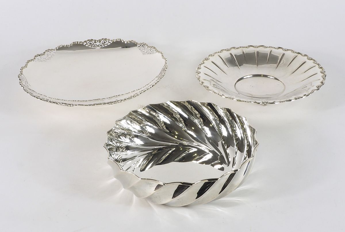 Lotto in argento composto da 2 ciotole e centrotavola. gr. tot 1130.