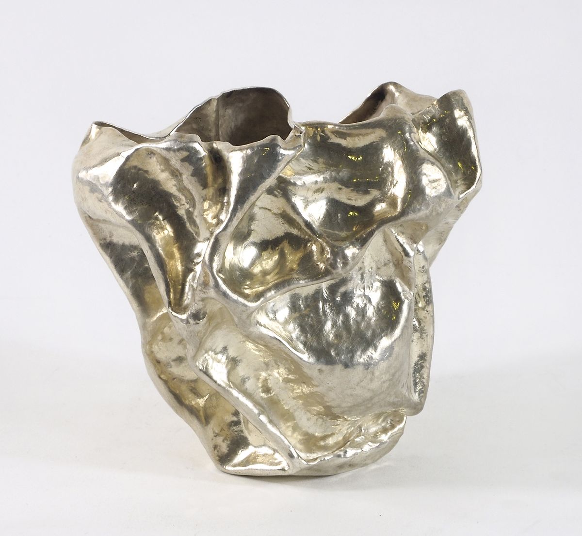 Cestino a "cartoccio" in argento lavorato. Firmato G. Annichiarico Trieste....
