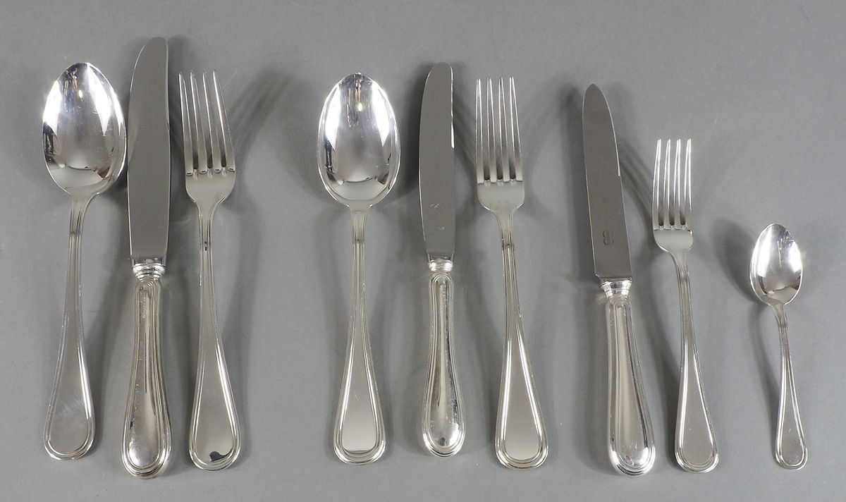 Lotto di 2 servizi di posate in argento composti rispettivamente da 50 e 30 pezzi. gr. tot 3470.