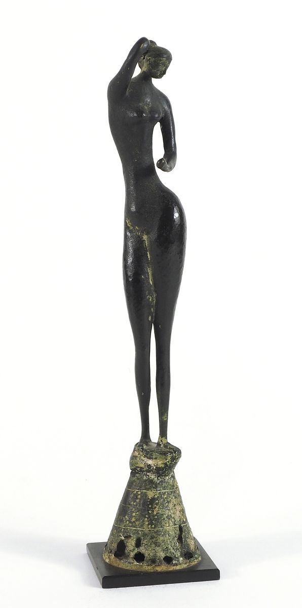 Giuseppe Negrisin 1930-1987 "Modella" h. tot 37,5- scultura in bronzo a patina scura su base Firma incisa.