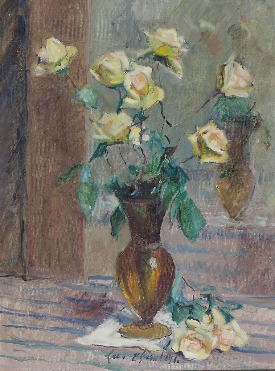 Carlo Cherubini 1897-1978 "Rose bianche" cm. 60x45 - olio su tela Firmato b. al centro.