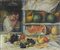 Armando Tonello 1897-1990 "Natura morta con anguria" (1940) cm. 75x90 - olio su tela Firmato b. a s. Autentica dell'Artista su fotografia.