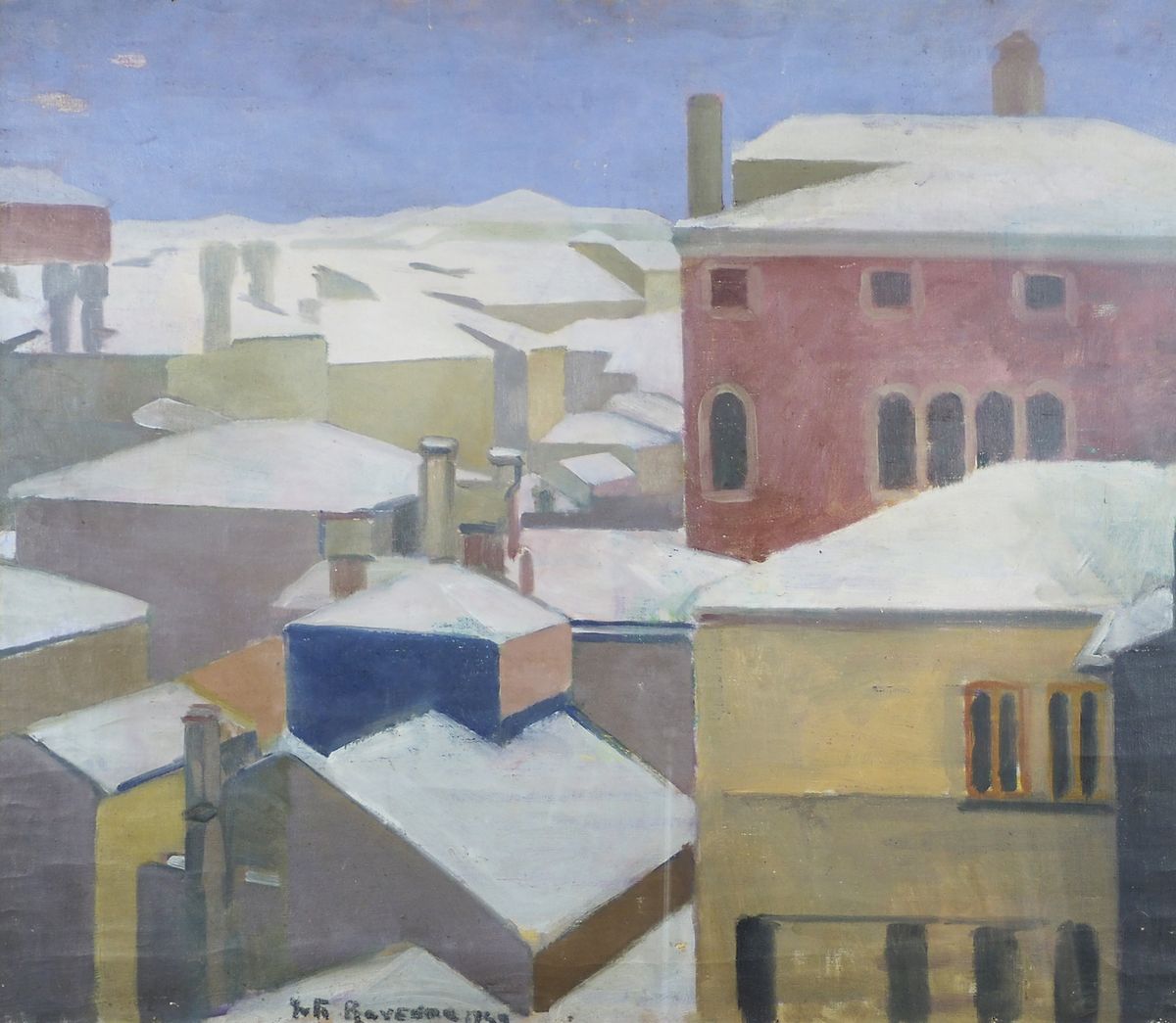 Juti Ravenna 1897-1972 "Venezia sotto la neve" cm. 57x66 - olio su tela Firmato b. a s. e datato 1940. Pubbl.: volume "Biblioteca del collezionismo d'arte-Novecento Italiano", ediz. De Agostini 1998, pag. 188.