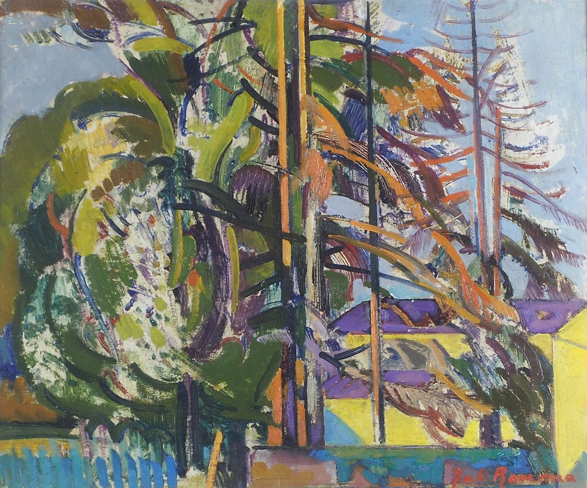 Juti Ravenna 1897-1972 "Paesaggio con alberi" cm. 38x46 - olio su tavola Firmato b. a d. Autentica dell'Archivio Artisti Veneti su fotografia. Esposiz.: Galleria La Veneta Piazzetta 2008; mostra "Il paesaggio nella pittira del '900" Torre di Mosto 2009 e pubblicato sul catalogo a pag. 92.