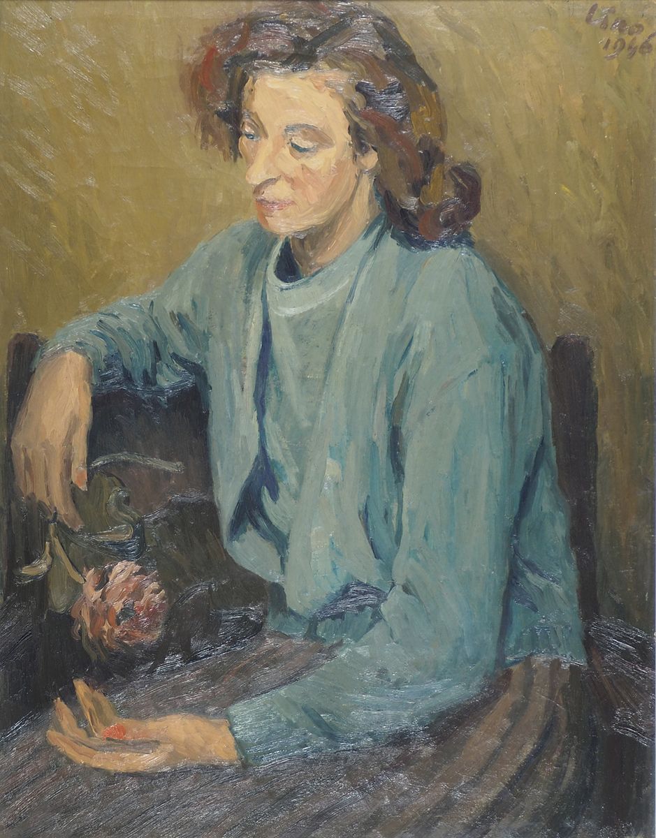 Lino Bianchi Bariviera 1906-1985 "Ritratto di Valeria Vecchia" (1946) cm. 70x55 - olio su tela Firmato alto a d. e datato 1946. Autentica su fotografia del Prof. E. Manzato in data 2007.
