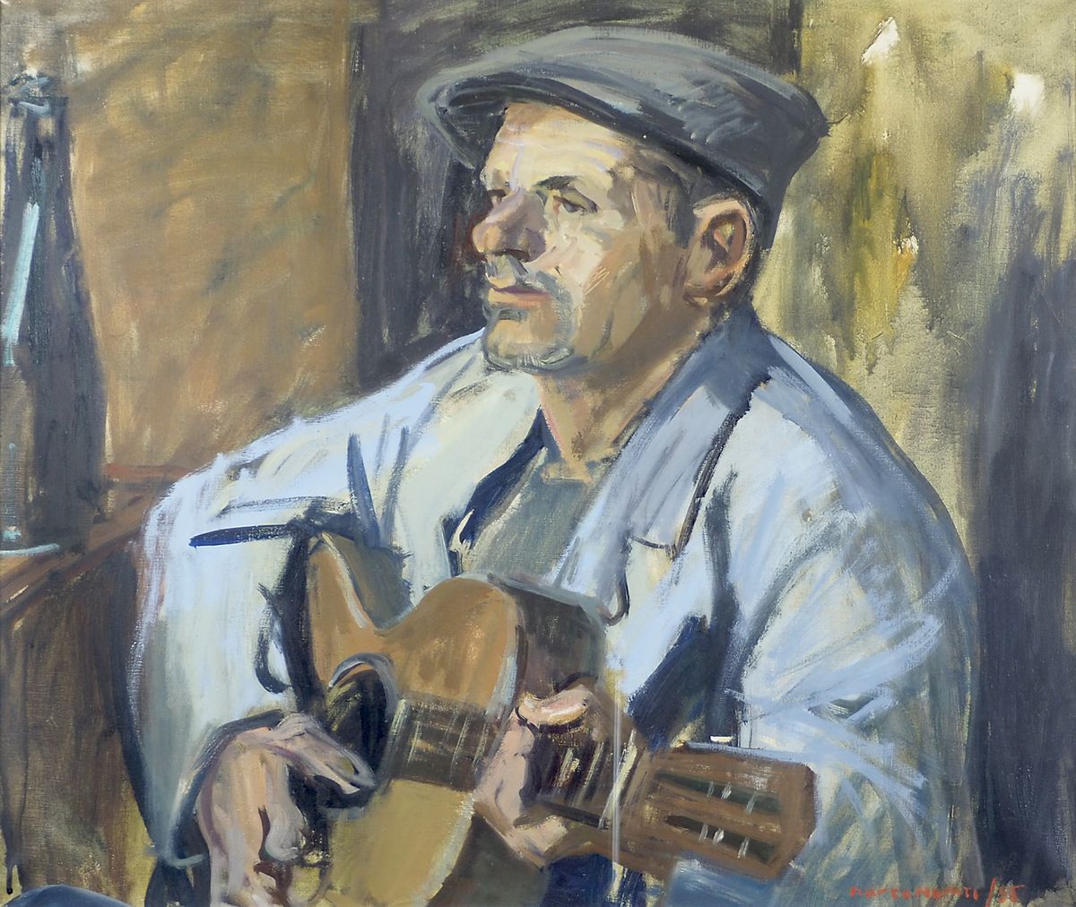 Marco Novati 1895-1975 "Il suonatore" cm. 55x65 - olio su tela Firmato b. a s. e datato 1955. Autentica dell'Artista su fotografia.