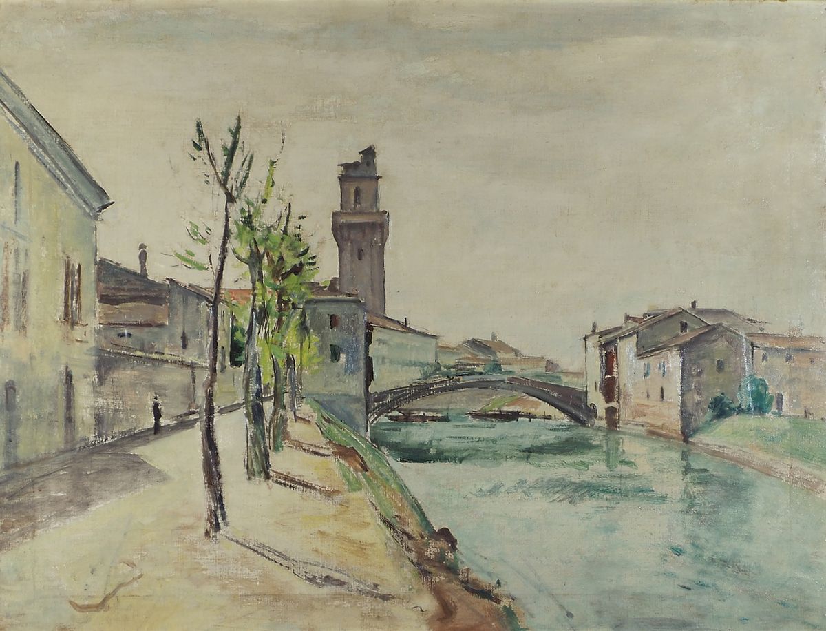 Fioravante Seibezzi 1906-1975 "La specola e il Bacchiglione" (1942) cm. 65x85 - olio su tela Al retro etichetta Galleria Le Tre Venezie Padova. Autentica su fotografia del Prof. P. Rizzi in data 2005.