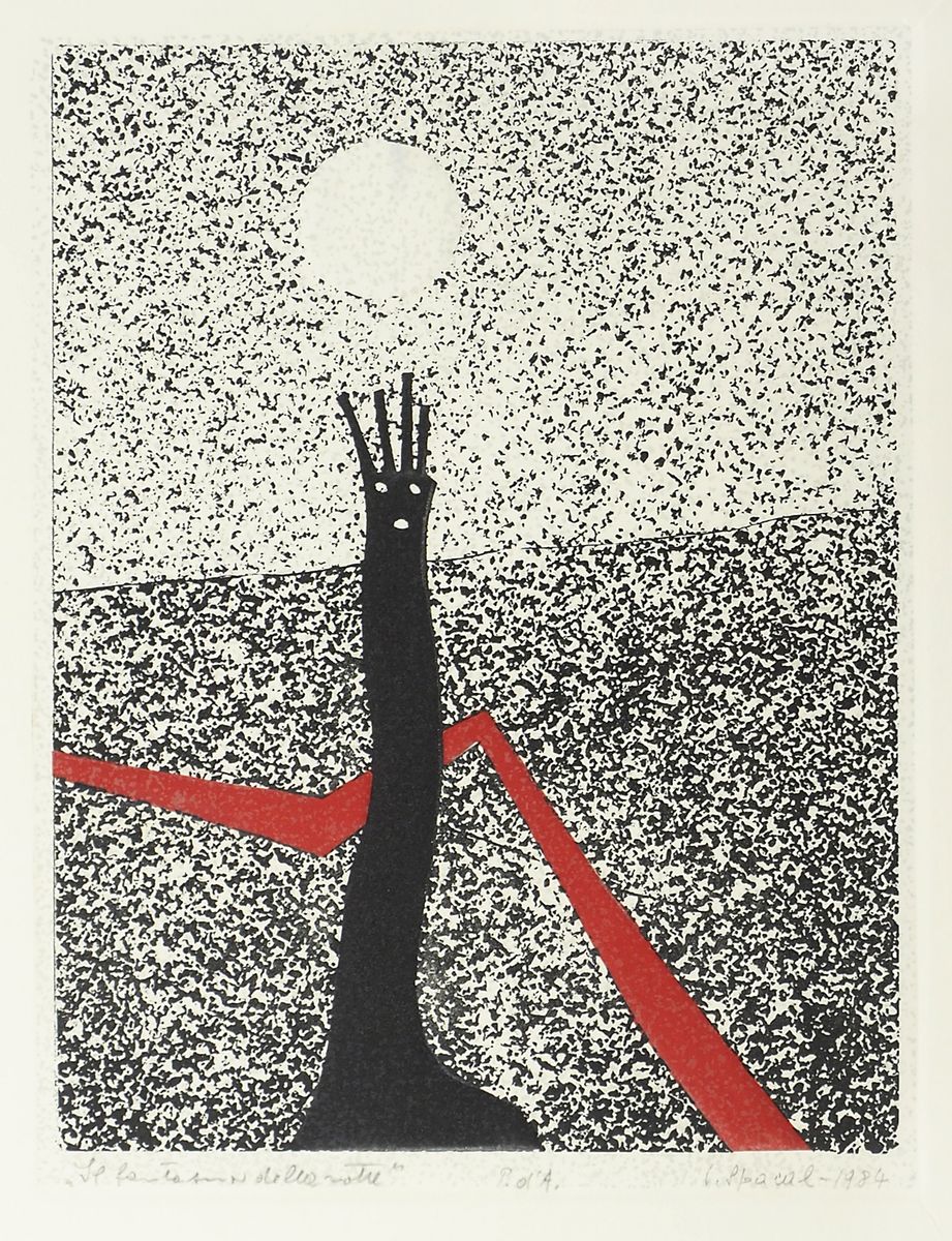 Luigi Spacal Trieste 1908-2000 "Fantasma della notte" cm. 46x34 - incisione a colori Firmato b. a d. e datato 1984. Prova d'Artista.