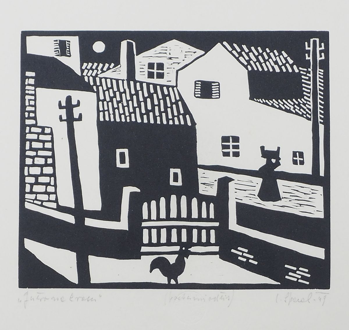 Luigi Spacal Trieste 1908-2000 "Mattino in Carso" cm. 25x35 - incisione a colori Firmato b. a d. e datato '49.