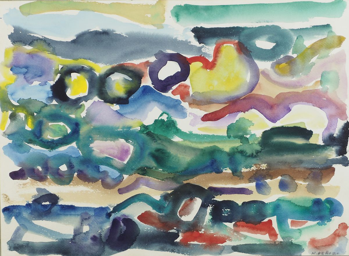 Nino Perizi Trieste 1917-1994 "Composizione" cm. 38x51 - acquerello su carta Firmato b. a d.
