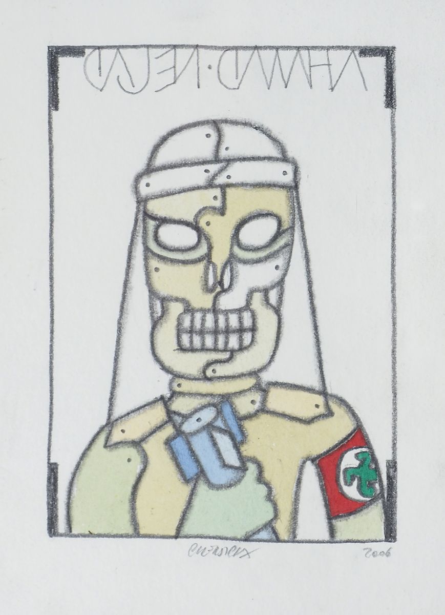 Bruno Chersicla 1937-2013 "RDM pazzo" cm. 24x17 - matite colorate su carta Firmato b. al centro e datato 2006.