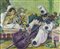 Fred Pittino Dogna (UD) 1906-1991 "Arlecchina e Pulcinella" cm. 80x100 - olio su tela Firmato b. a d. e datato '88. Al retro etichetta dell'Artista con dati dell'opera.
