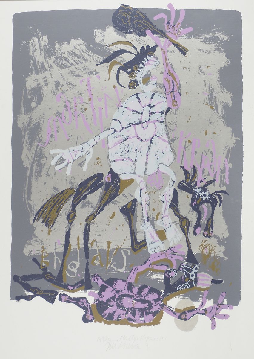 Jose Ciuha Lubiana 1924-2015 "Martin Krpan" cm. 70x50 - litografia a colori Firmato b. al centro, datato '91 e titolato. Esemplare 19/20.