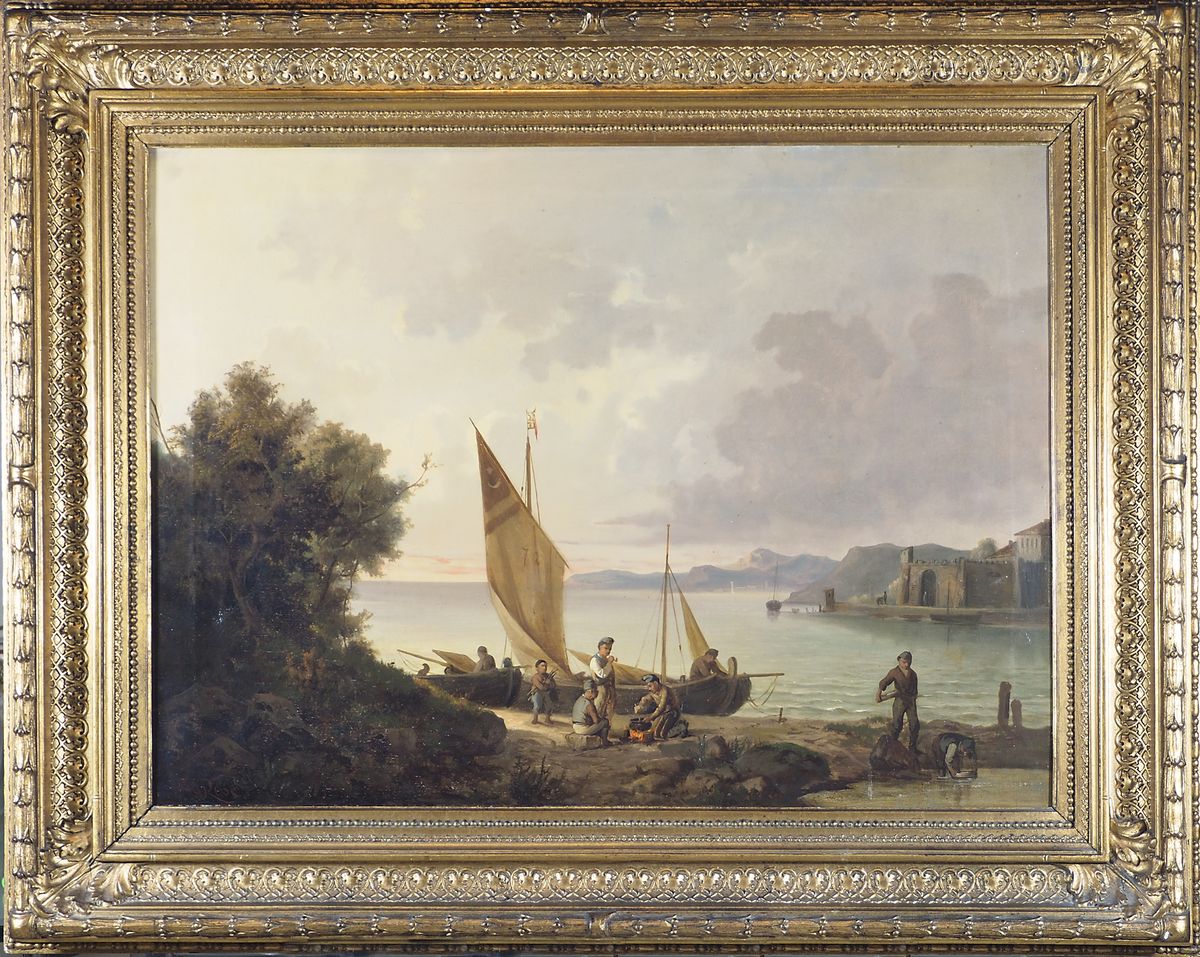 Antonio Rosè Trieste 1848-1918 "Giovani pescatori in riposo" cm. 52x70 - olio...