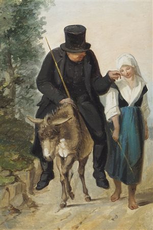 Antonio Rosè Trieste 1848-1918 "Dolci coccole" cm. 23x15 - olio su cartone