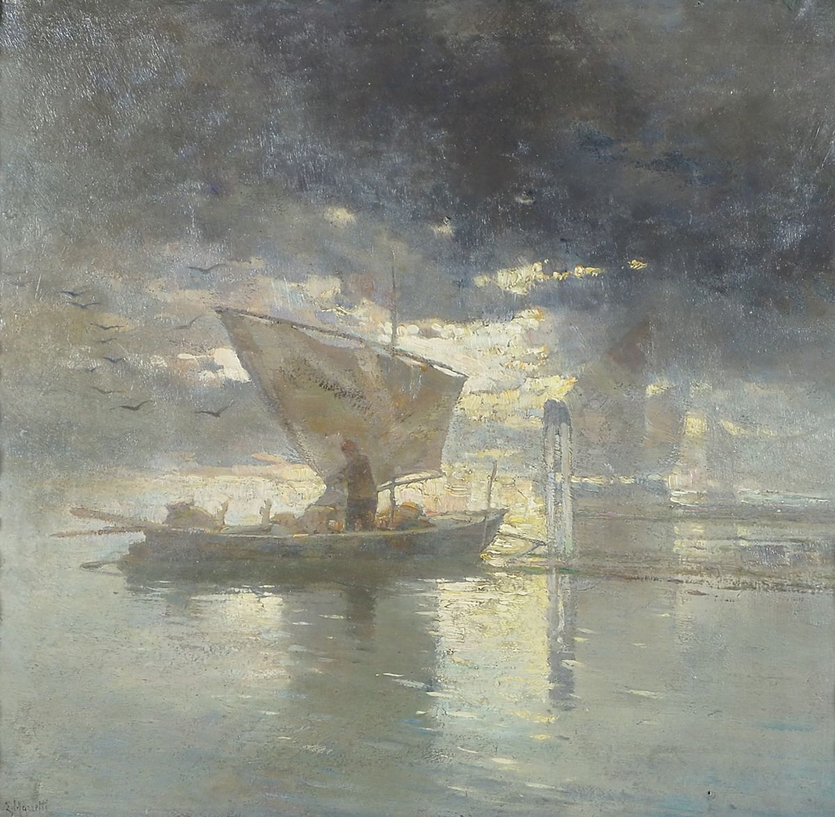 Emo Mazzetti 1870-1955 "Ritorno al calar del sole" cm. 40x42 - olio su cartone Firmato b. a s.