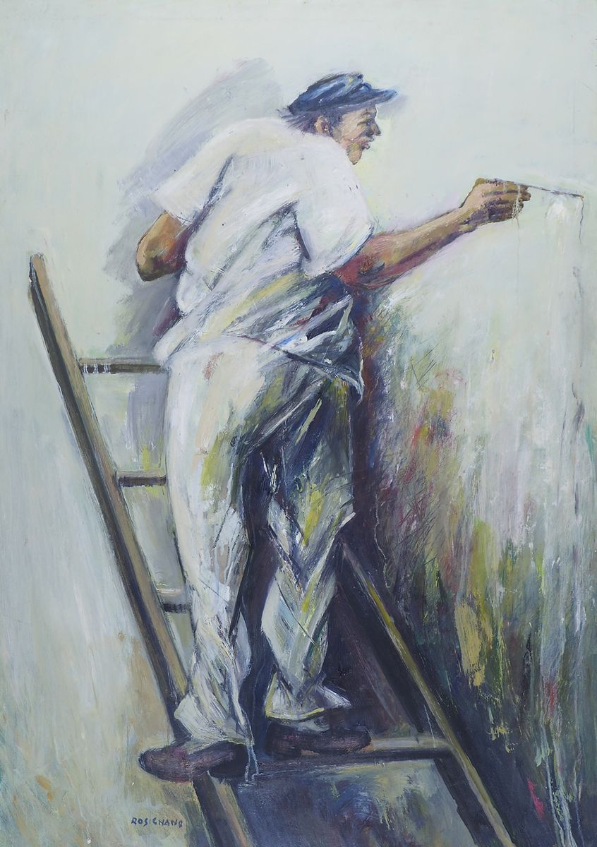 Livio Rosignano Pinguente (Pola) 1924-2015 "Imbianchino" cm. 102-73 - olio su tela Firmato b. a s.