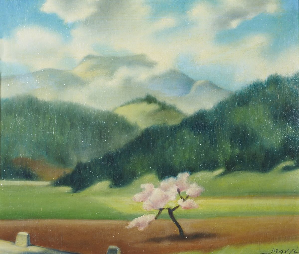 Romeo Marsi Pola 1909-Trieste1944 "Alberello in fiore" cm. 28x32 - olio su tavoletta Firmato b. a d. Titolo al retro.