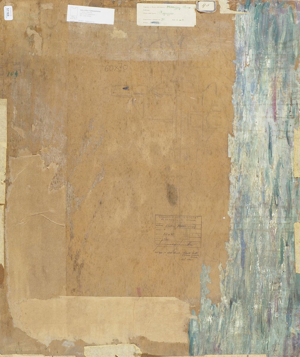 Pietro Marussig Trieste 1879-Pavia 1937 "Veduta dalla terrazza" (1934) cm. 70x60 - olio su tavola Al retro dipinta Marina di Boccadasse con la chiesa di S. Antonio. Al retro: etichetta Galleria Torbandena Trieste; etichetta dell'Artista con dati dell'opera; timbro Galleria Rotta Genova. Pubbl.: catalogo "Piero Marussig" Silana Editoriale 2006, pag. 224 fig. 745; catalogo "Piero Marussig" a cura Fonazione CRTrieste 2015, pag. 346 fig. 791.