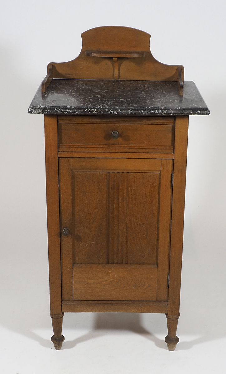 Comodino con anta e cassetto, piano in marmo e alzata.