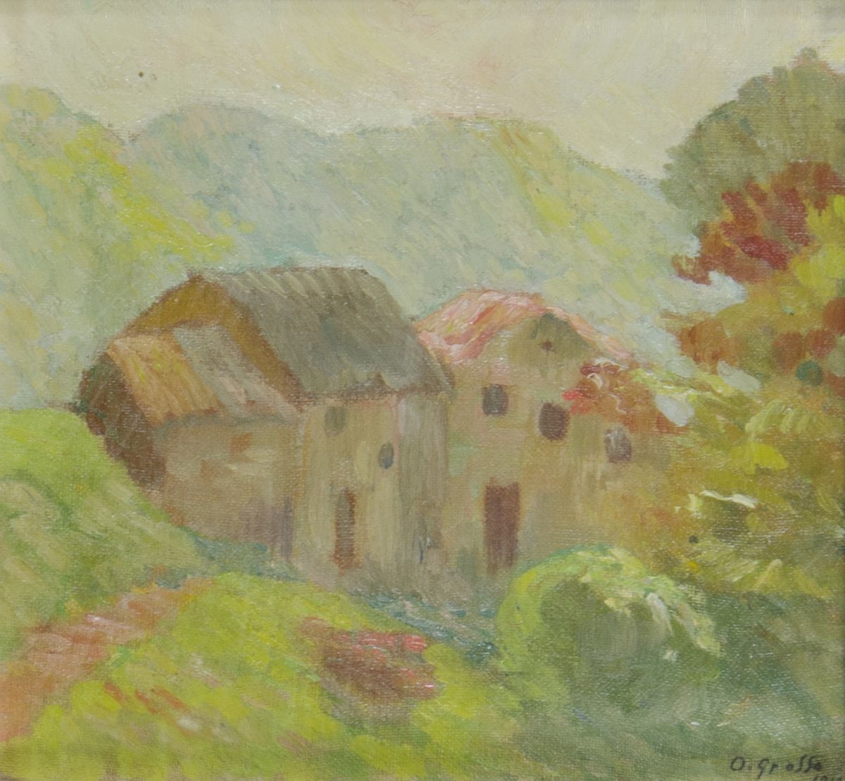 Orlando Grosso 1882-1968 "Case" cm. 21x22 - olio su tela su cartone Firmato b. a d. e datato 1912.