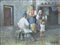 Pittore ungherese del '900 "Riunione di famiglia" cm. 23x30 - pastelli...
