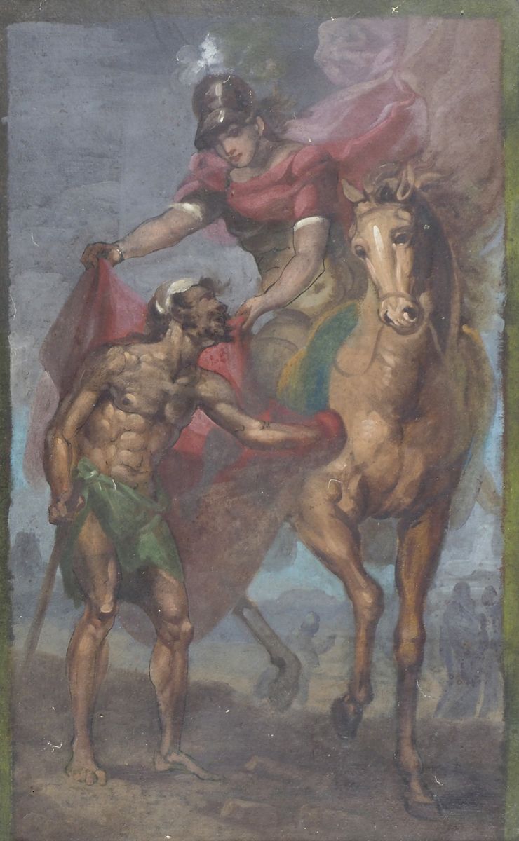 Maestro del XIX secolo "San Martino e il mendicante" cm. 47x30 - tecnica mista Prov.: collezione Basilio Trieste.