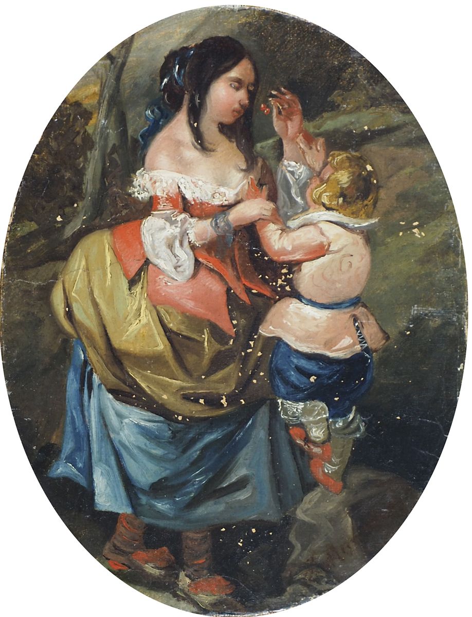 Maestro del XIX secolo "Scena storica" cm. 28x21 - olio su tela (ovale)...