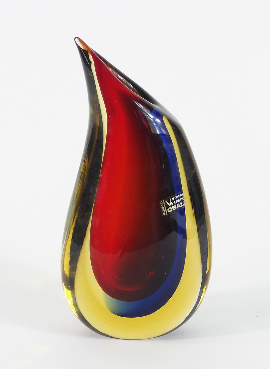 Vaso in vetro "massiccio" a tre colori. Con etichetta Vetreria Artistica Oball. H. cm. 24,5.