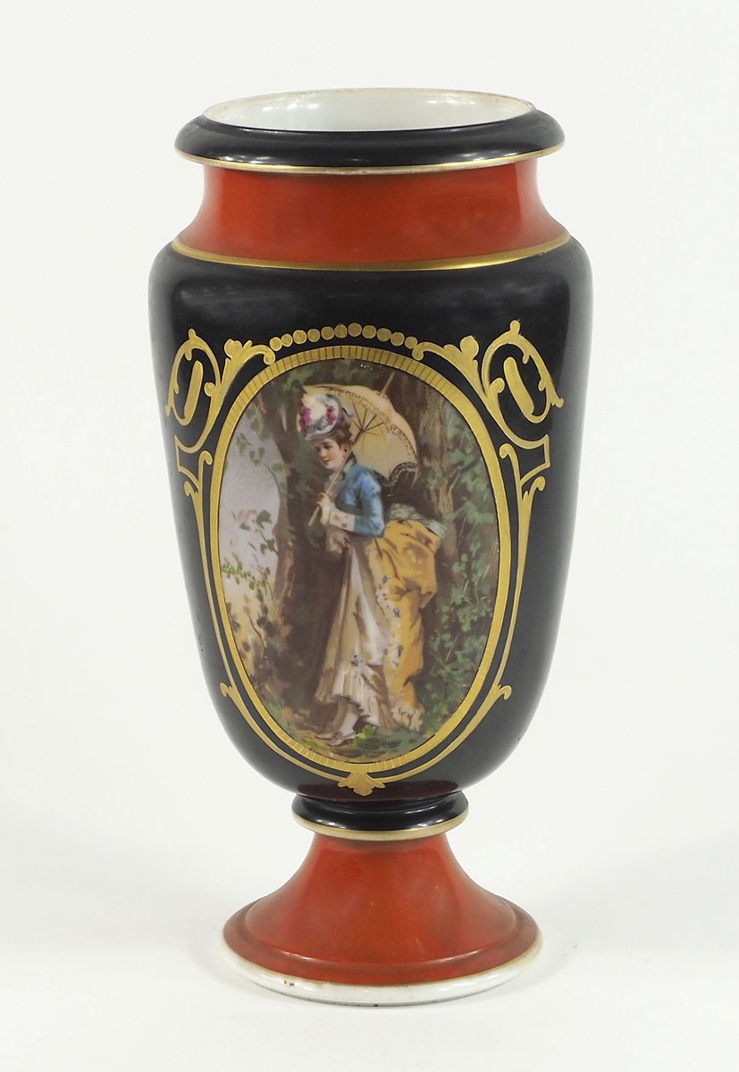 Grande vaso in porcellana policroma finemente dipinto con figura di gentildonna. XIX secolo. H. cm. 33.