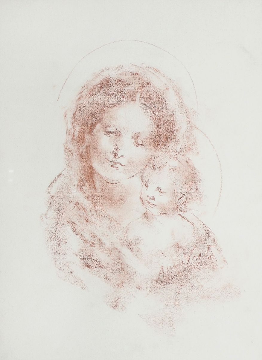 Anna Prati 1911-1997 "Madonna con bambino" cm. 40x30 - sanguigna su carta Firmato b. a d.
