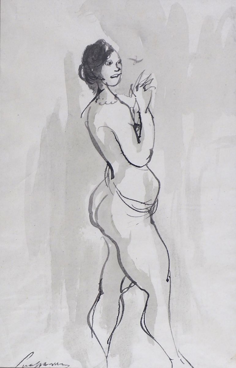 Luigi Spazzapan Gradisca 1890-Torino 1958 "Figura femminile" cm. 28x19 - china su carta Firmato b. a s.