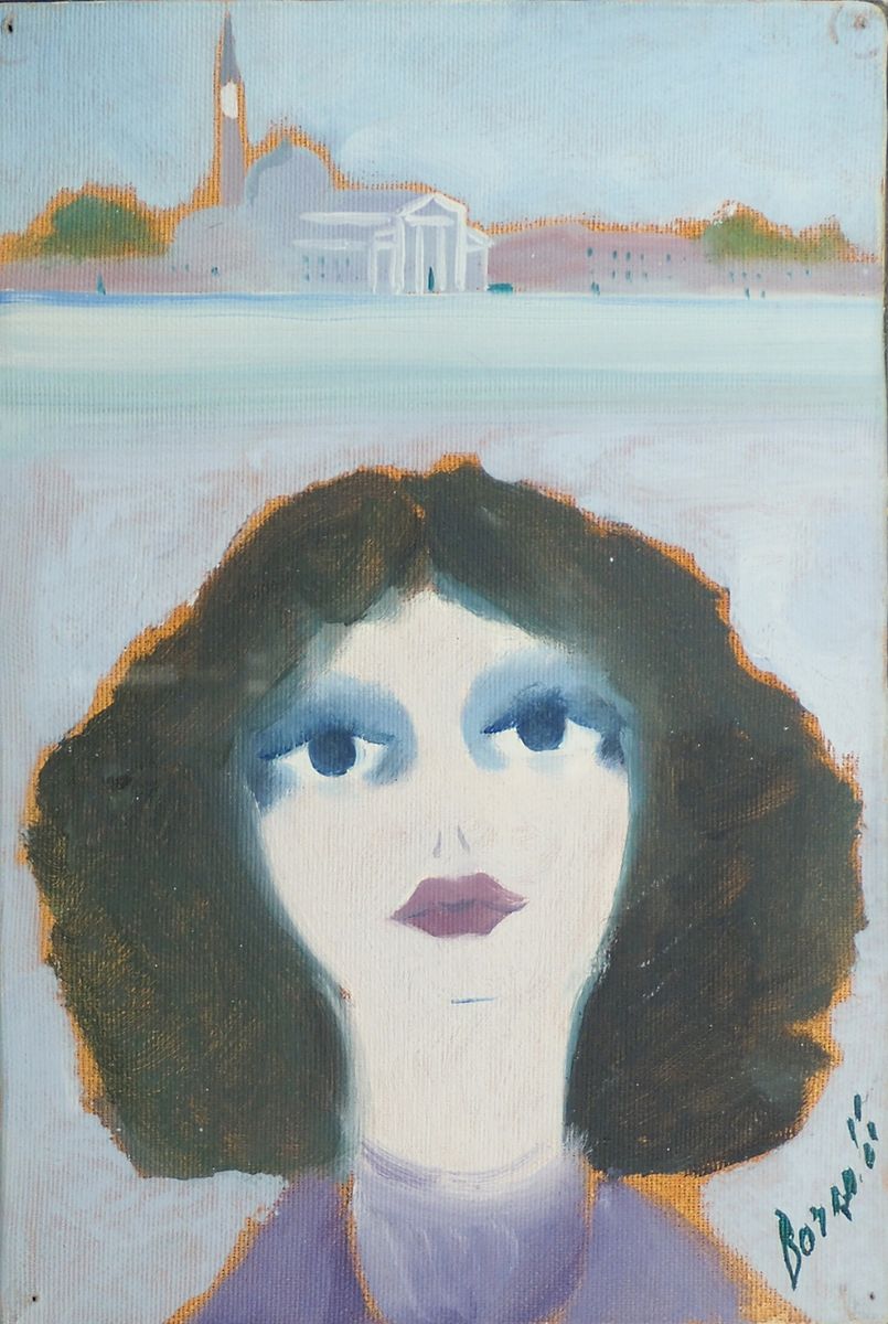Renato Borsato (?) Venezia 1927-2013 "Ragazza a Venezia" cm. 30x20 - olio su tela Firmato b. a d. e al retro.